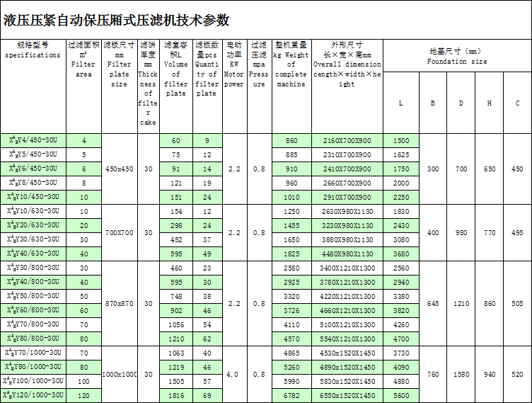 液壓壓緊自動保壓壓濾機采用液壓裝置作為壓緊、松開濾板的動力機構,并采用電接點壓力表實現自動保壓。操作簡單安全、省力、整機工作穩定,電器部分配有多種安全裝置。確保操作人員安全和壓濾機的正常使用。